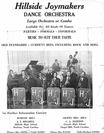Dr. Joseph T. Mitchell was the band director at Hillside High School for much of the 1960s. In 1967, he became the director at North Carolina College (now NCCU). Along with Clarke Egerton, Jr., his successor at Hillside, Mitchell educated countless local musicians and also played saxophone in groups outside the classroom such as the Hillside Joymakers.
