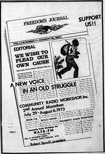 WAFR was a black non-commercial radio station from 1971 to 1976. Unlike commercial broadcasters, WAFR didn't have to worry about keeping advertisers happy. As a result, the station was able to produce highly political programming. At the height of the Black Power movement, the station was a radical voice for independent black politics and culture. WAFR deejays took on Arabic and African names on the air, and the station’s call letters referenced Africa. WAFR’s early staffers included Obataiye Akinwole, Donald Baker, Ralph Williams, Robert Spruill, and Jim Davis.